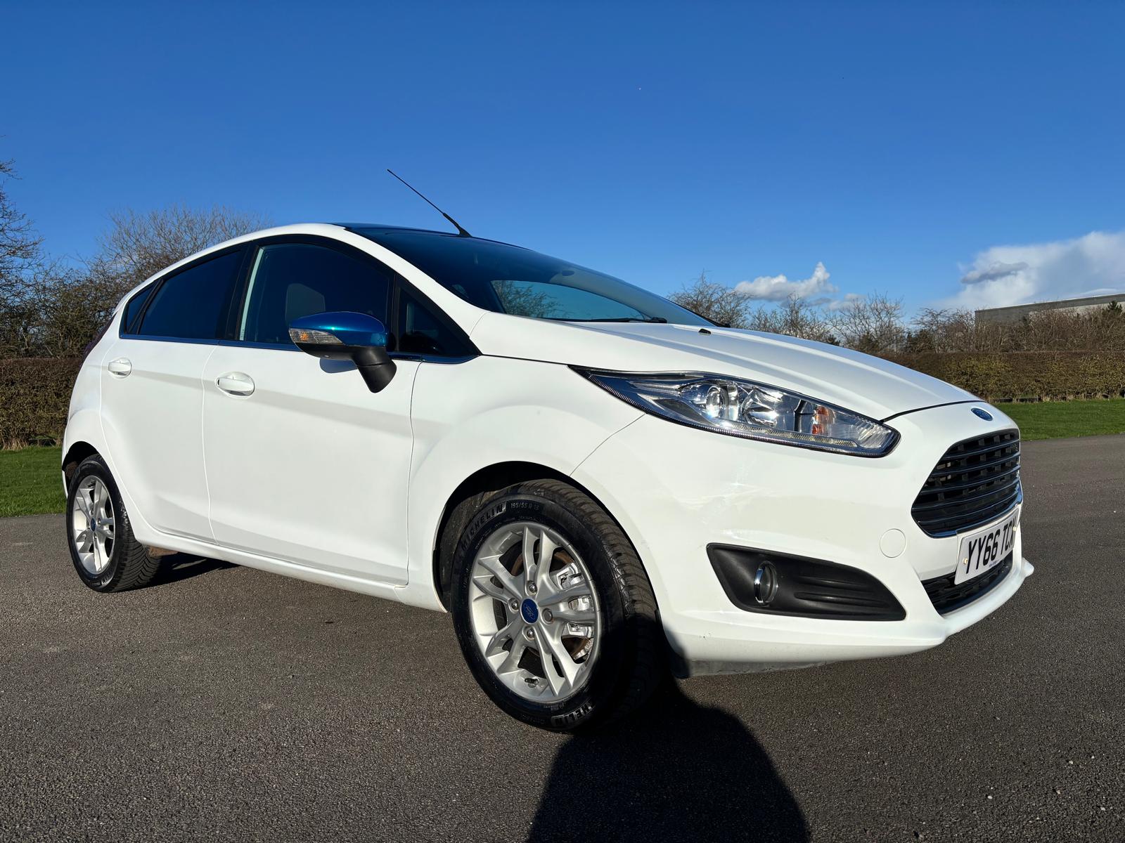 Ford Fiesta 1.25 Zetec White Edition, 5 door manual. Finished in Brilliant White with Candy Blue contrasting roof and mirror caps. Just 35,000 miles from new with only 2 private owners. Limited edition White Edition specification includes silver alloy wheels, satellite navigation, DAB radio and electrically folding mirrors. Recently serviced with the cambelt and water pump replaced for added peace of mind. A great looking, well cared for example that is ready to drive away.