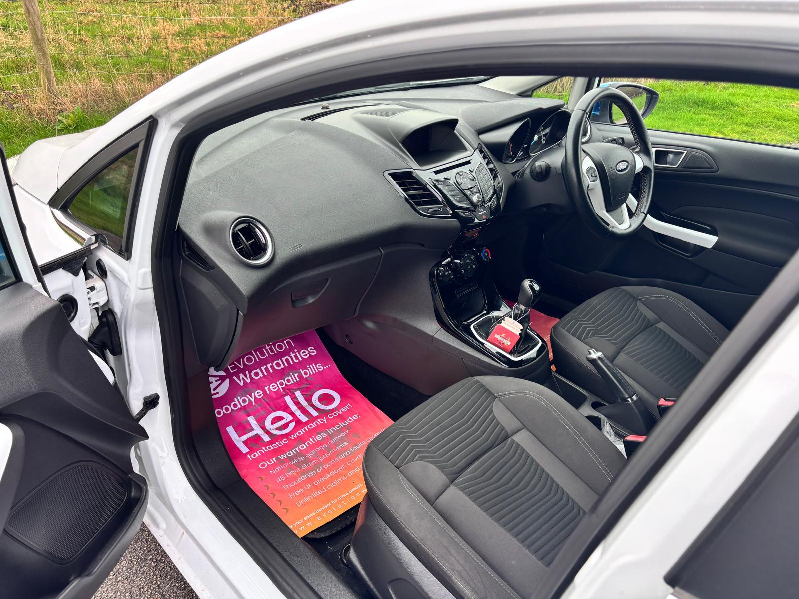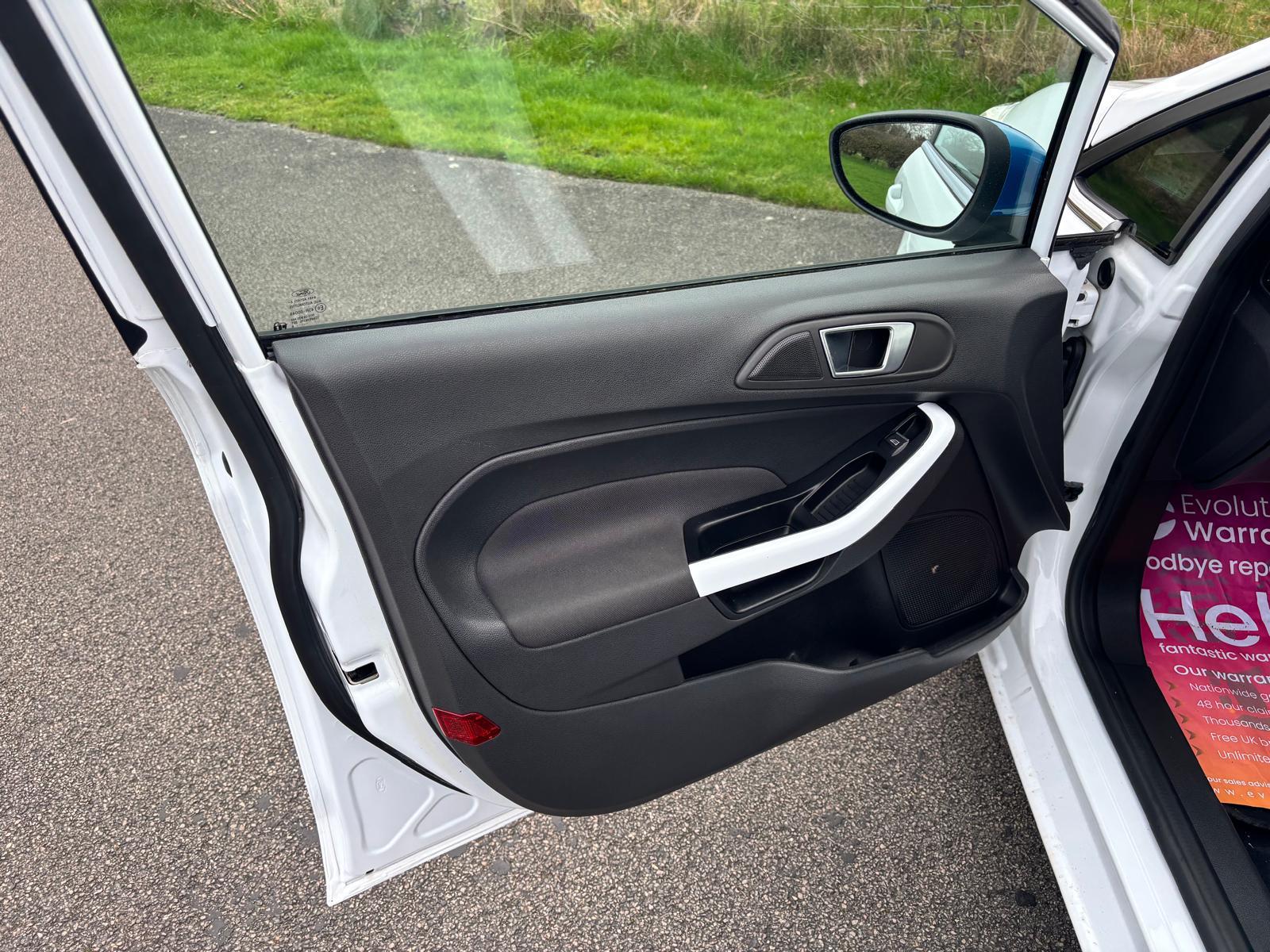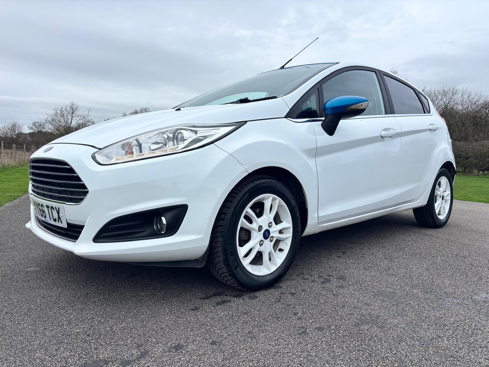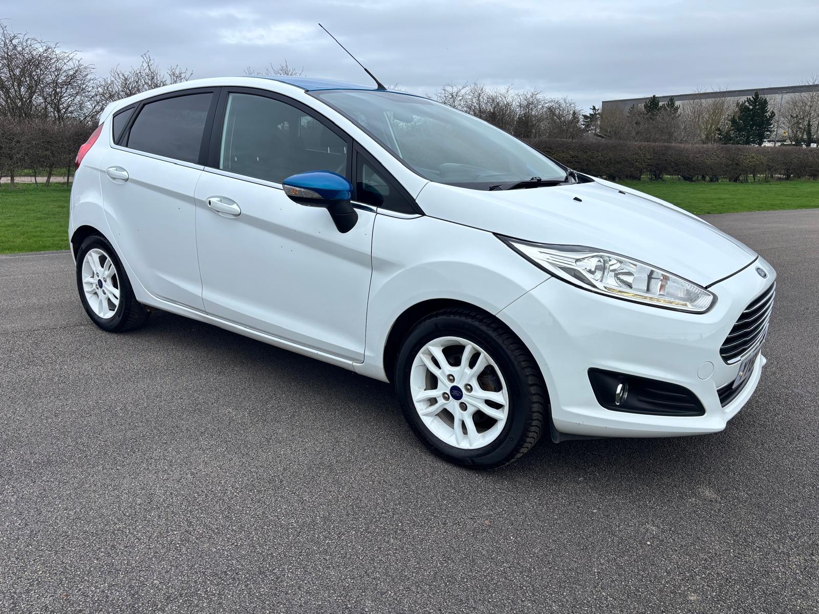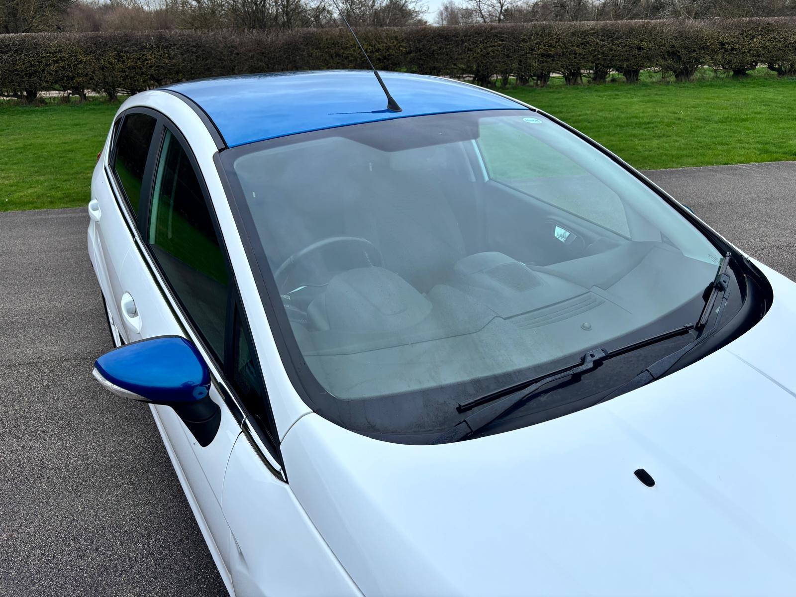 Ford Fiesta 1.25 Zetec White Edition, 5 door manual. Finished in Brilliant White with Candy Blue contrasting roof and mirror caps. Just 35,000 miles from new with only 2 private owners. Limited edition White Edition specification includes white alloy wheels, satellite navigation, DAB radio and electrically folding mirrors. Recently serviced with the cambelt and water pump replaced for added peace of mind. A great looking, well cared for example that is ready to drive away.